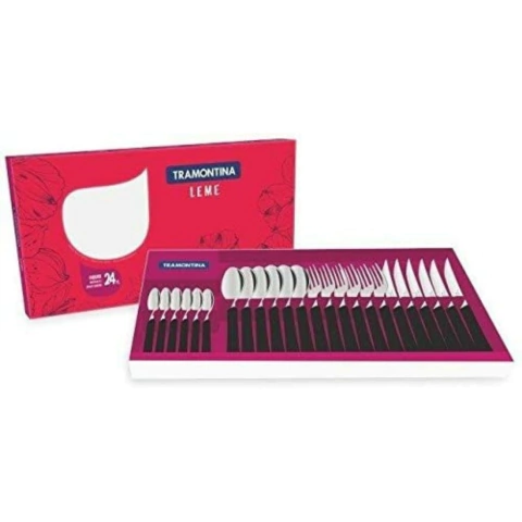 Sua mesa vai ficar muito mais completa e alegre com o faqueiro Tramontina Leme preto com 24 peças. Seus garfos e colheres são mais espessos para evitar deformações. Peças com a qualidade e design irreverente Tramontina!